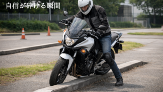 一本橋で9.8秒を記録し、初めて手応えを感じた直後に訪れた失敗。砕けたのはバランスではなく自信だった。教習所で味わったリアルな葛藤の記録。