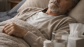 体調不良から少し回復しティッシュを手に安堵した表情を見せる男性の室内風景 「日々とぬくもり」