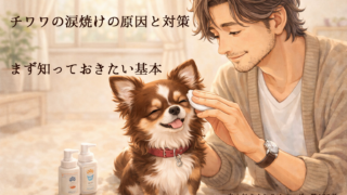 チワワの涙焼けの原因と対策を分かりやすく整理。体質・ドッグフード・ケアなど、基本から解説しています。実際に試したドッグフード比較や体験記事へのリンクもあり、これから対策を考える方に役立つ内容です。