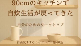 ライフログ 90cmのキッチンに、戻ってきた生活 新居で選んだ90cmのワークトップ。腰の負担が減り、料理のストレスも軽くなったことで、少し離れていた自炊生活が戻ってきた。キッチンが“自分の居場所”になるまでの話。 2025.12.16 「日々とぬくもり」ライフログ