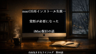 2019年iMacが起動不能になり、復旧モードや再インストールも失敗。FileVault暗号化の破損が疑われ、ついに内蔵ディスク消去=クリーンインストールを決断するまでの記録。焦りと覚悟の第87話。